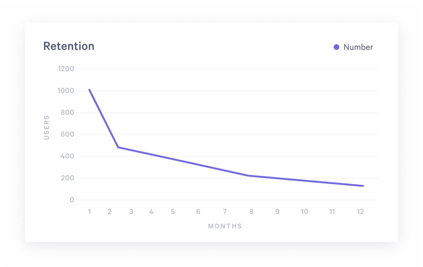 This chart plots out the percentage that remains active over time. So if the chart hits 400 in month four that means 400 of the initial 1000 users are still active on the platform 4 months later.