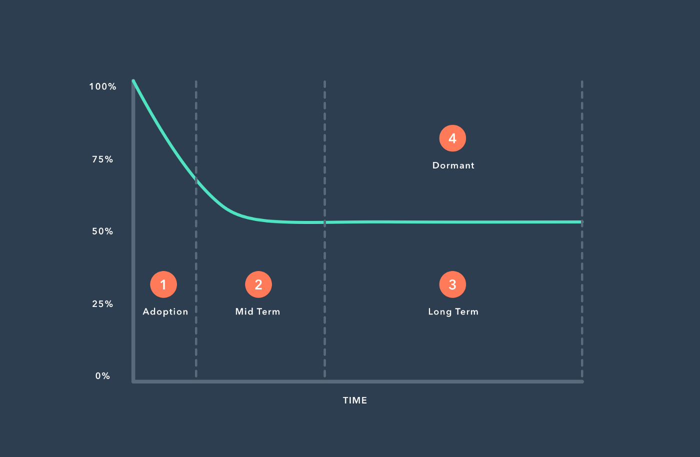 The next step is to break the curve down into more actionable pieces. Retention actually has four stages.