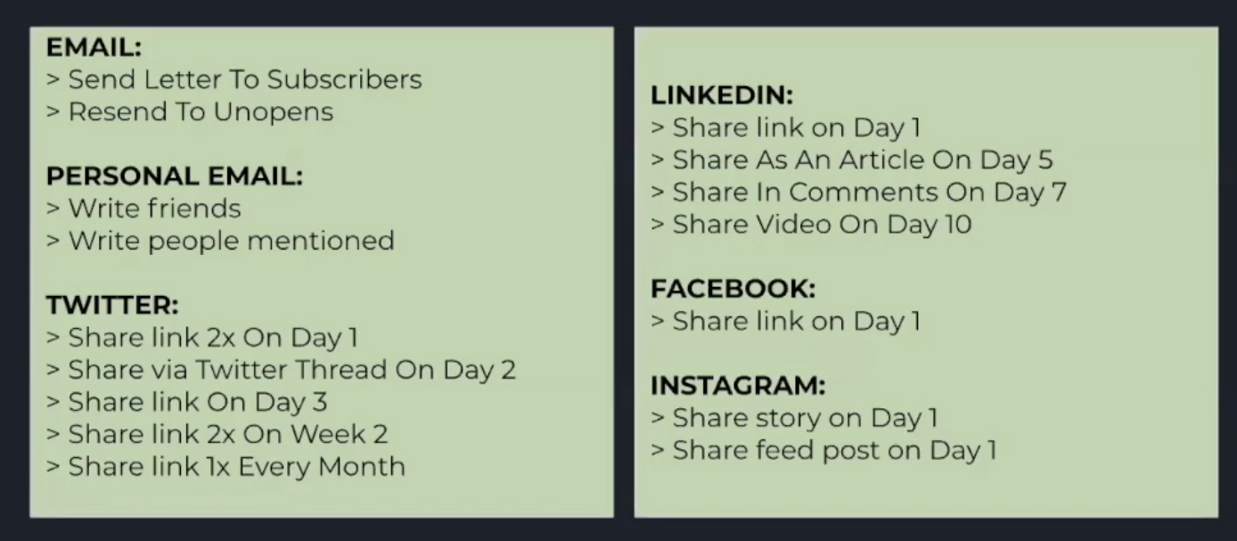To get started, I went through a challenge by Ross Simmons on content distribution1. The challange was put together before generative AI was a thing. I wanted to see if there was any useful advice I could build on as I figure out how to repurpose content with AI.