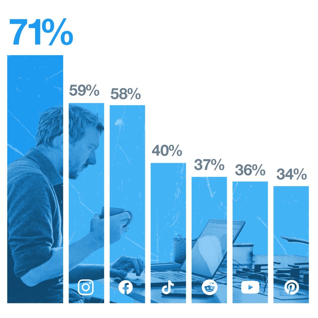 It is currently the best place to connect with your target audience as a business. In a 2021 Twitter study of how people engage with brands on social media, 71% of people rated Twitter as good or great for brand interaction. Instagram and Facebook followed with 59% and 58% respectively.